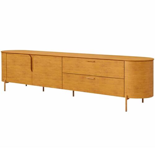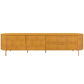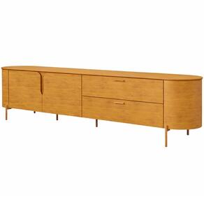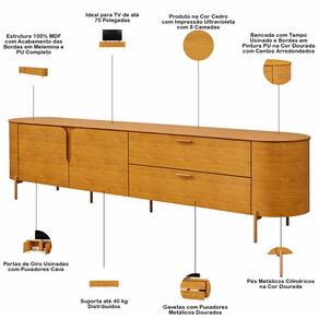Os contornos suaves e os cantos arredondados não apenas conferem um visual harmônico, mas também garantem que a estética orgânica se destaque em qualquer decoração, trazendo um ar de tranquilidade e beleza natural para sua sala. Enquanto os pés metálicos proporcionam um contraste perfeito, adicionando um elemento de robustez e estabilidade ao móvel, a tonalidade dourada traz um toque de glamour, que combina com qualquer paleta de cores. Para completar essa experiência, você contará com excelente espaço interno, tanto nas portas, quanto gavetas, de modo que terá uma bancada limpa e uma sala de estar organizada. Em outras palavras, é a peça-chave para criar uma atmosfera acolhedora, ideal para momentos de lazer e entretenimento com a família e amigos.