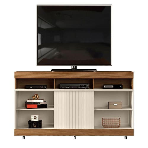 Rack para Sala Lev 120 Carvalho Nobre Off White – DJ Móveis