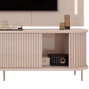 A escolha certa dos móveis que comporão a sala de estar faz toda diferença na impressão que você quer passar e no estilo de ambiente que deseja criar. Por isso, se tem uma opção certeira é a combinação do Rack Para Sala Ripado com Painel Para 75 Pol Atlantis D05 Off White, da Lyam Decor. O rack conta com um design orgânico, com cantos curvos, que harmoniza perfeitamente com as portas ripadas e os pés metálicos, trazendo um toque de contemporaneidade e seguindo as últimas tendências de decoração. Mais que o quesito estético, esse rack bancada ainda proporciona funcionalidade ímpar, já que possui duas portas deslizantes para armazenar objetos, além de dois nichos para aparelhos eletrônicos e prateleira de vidro. Para finalizar, o painel para , também com cantos arredondados, completa a decoração, ao passo que serve de apoio para de até 75 polegadas, a qual fica sob os holofotes dos perfis de LED (um charme à parte).