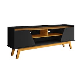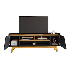 O Rack Turim possui design marcante que mescla linhas diagonais em suas portas chanfradas em ângulo com dobradiças como sistema softclose e pés de madeira maciça, proporcionando design retrô e distinto! Possui uma prateleira e três nicho que são ideia para acomodar os mais variados tipos de aparelho eletrônicos que complemente sua TV, bem como vários tipos de objetos de decoração.