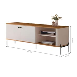 Estrutura robusta com pés e puxadores em metal, garantindo durabilidade e um toque contemporâneo.Base e topo em MDF de 15mm, proporcionando resistência e elegância.Com 2 portas e 1 prateleira, oferece amplo espaço para armazenagem e organização.Suporta TVs de até 58 polegadas, proporcionando a versatilidade ideal para diferentes modelos de televisores.