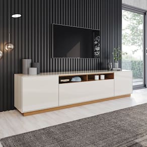 O Rack Domus é a escolha ideal para quem busca um ambiente moderno, elegante e organizado. Com design contemporâneo combinando o acabamento Off White com o toque natural do Cinamomo, criando uma composição sofisticada que valoriza qualquer sala de estar.