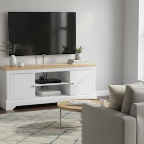 O tampo do rack passa por um cuidadoso processo de acabamento: primeiro, a madeira é preparada onde que realça os veios naturais e mostra os nós, conferindo textura e profundidade ao visual. Em seguida, recebe a pintura, aplicadas sobre a base em três fases, garantindo uniformidade, durabilidade e um acabamento perfeito, elegante e resistente, que valoriza a beleza natural da madeira. Produto Montado: Sim Acabamento: Pintura UV Acabamento da Porta: Pintura Texturizada UV Acabamento da Prateleira: Pintura Texturizada UV Acabamento dos Pés: Pintura Ambiente Principal: Sala de Estar codigo_ean: 7900288280275 Complexidade da Montagem: Baixa: pode ser montado por uma pessoa sozinha Cor: Branco / Mel Cor da Caixa: Branco Cor do Produto: Branco / Mel Escala de Brilho: Semi-Brilho Escala de Brilho da Porta: Semi-Fosco Escala de Brilho da Prateleira: Semi-Fosco Espessura do Tampo: 18 mm Ideal para TVs até (Polegadas): 50 Informações Complementares: OBSERVAÇÃO RELEVANTE: Por ser um produto feito com a madeira , pode ter variação de cores na madeira Itens Inclusos: 1 Rack, Manual de Montagem e Kit Ferragem Linha ou Coleção: Louise Manual de Montagem e Instalação: https://product-hub-prd.madeiramadeira.com.br/946248211/documents/cf5838a8-fcee-42d8-a5b8-9e1d5836e0853301720576617618339877766.pdf Marca: Treboll Material da Porta: MDF Material da Prateleira: MDF Material do Puxador da Porta: Metal Material dos Pés: MDF Material Principal: MDF Necessita Montagem: Sim Origem do Produto: Nacional Peso: 19 kg Peso Máximo por Prateleira: 12 kg Possui Espelho: Não Possui iluminação: Não Possui Passa Cabos: Sim Possui Pés: Rodapé Possui Prateleiras: Sim Possui Vidro: Não Recomendações de Uso, Manutenção e Limpeza: Limpe com flanela seca. Nunca utilize solventes, álcool, acetona, thinner, lustra móveis, abrasivos ou qualquer outro produto que contenha soda ou ácido para limpar ou tirar manchas. Sapatas Niveladoras: Não Sistema de Montagem: parafusos, cavilhas Tipo de Dobradiça/Corrediça da Porta: Metálica Tipo de Porta: Abrir Tipo de Puxador da Porta: Externo