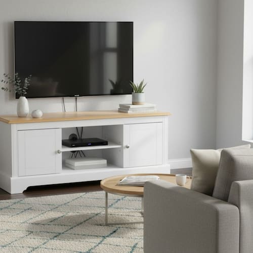 Transforme sua sala de estar com este elegante rack de madeira, que une funcionalidade, beleza e qualidade artesanal. Com design contemporâneo e atemporal, ele possui duas portas laterais com amplo espaço interno para organização, além de nichos centrais ideais para eletrônicos, decodificadores ou objetos decorativos.