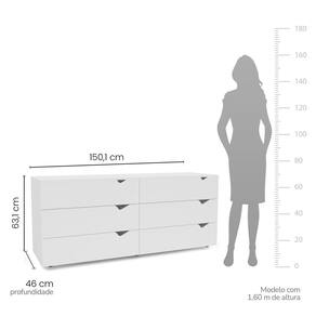 O rack 6 gavetas Porto, da Politorno Móveis, é uma opção sofisticada e funcional para a sua sala de estar. Com 63,1 cm de altura, 150 cm de largura e 46 cm de profundidade, oferece amplo espaço de armazenamento para organizar eletrônicos, acessórios e objetos decorativos. Fabricado em MDP/MDF, com acabamento em pintura UV, o rack garante resistência e durabilidade. Seu design atemporal e elegante combina facilmente com diferentes estilos de decoração, trazendo um toque refinado ao ambiente. As gavetas possuem corrediças telescópicas, que proporcionam deslizamento suave, e os puxadores externos facilitam o manuseio. Perfeito para quem busca qualidade, praticidade e sofisticação na sala de estar. Produto Montado: Sim Acabamento: Pintura UV Acabamento da Gaveta: Pintura UV Ambiente Principal: Sala de Estar codigo_ean: 7900288245731 Complexidade da Montagem: Média: pode ser montado por mais de uma pessoa e/ou necessite de maior conhecimento para montagem Cor: Branco Cor do Produto: Branco Cor Interna: Branco Escala de Brilho: Semi-Fosco Espessura do Tampo: 150 mm Gaveta com Chave: Não Ideal para TVs até (Polegadas): 65 Itens Inclusos: 1 Rack, Kit de Ferragens, Manual de Montagem e Termo de Garantia Linha ou Coleção: Porto Manual de Montagem e Instalação: https://product-hub-prd.madeiramadeira.com.br/700422081/documents/492aa423-2943-4cb0-a7ff-fdc6b02c36613249000622417592370169533.pdf Marca: Politorno Material da Gaveta: MDP Material dos Pés: Plástico Material Principal: MDP Necessita Montagem: Sim Peso: 46,13 kg Peso Máximo por Gaveta: 3 kg Possui Espelho: Não Possui iluminação: Não Possui Passa Cabos: Não Possui Pés: 06 Possui Portas: Não Possui Prateleiras: Não Possui Vidro: Não Quantidade de Gavetas: 06 Gavetas Recomendações de Uso, Manutenção e Limpeza: Utilize um pano macio umedecido com água e sabão neutro, seguido de pano seco. Não utilize produtos químicos ou abrasivos para limpeza, pois estes danificam o revestimento do móvel. Sapatas Niveladoras: Sim Sistema de Montagem: Cavilha, Parafuso, Minifix e prego. Tipo de Corrediça da Gaveta: Metálica Telescópica Tipo de Puxador da Gaveta: Embutido Marca: Não Informado