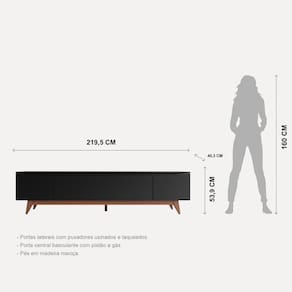 Feito com materiais de alta qualidade, o Rack Flynt é durável e resistente, garantindo a segurança dos seus eletrônicos e a longevidade do móvel. Ideal para salas de estar, living rooms e até mesmo ambientes comerciais, este rack é uma escolha prática e elegante para qualquer espaço. Produto Montado: Sim Acabamento: Pintura UV Acabamento da Porta: Pintura UV Altura dos Pés: 17 cm Altura Máxima dos Pés: 17.0000 Ambiente Principal: Sala de Estar codigo_ean: 7900288230805 Complexidade da Montagem: Média: pode ser montado por mais de uma pessoa e/ou necessite de maior conhecimento para montagem Cor: Preto Touch / Natural Cor da Porta: Preto Cor do Produto: Preto Touch / Natural Cor Interna: Preto Escala de Brilho: Fosco Escala de Brilho da Porta: Fosco Espessura do Tampo: 15 mm Estilo do Pé: Palito Ideal para TVs até (Polegadas): 75 Itens Inclusos: 1 Rack, Kit Ferragens e Manual de Montagem Linha ou Coleção: Flynt Manual de Montagem e Instalação: https://product-hub-prd.madeiramadeira.com.br/776847066/documents/a1e2c4ec-fc0c-4510-b6f3-a10e4b83c6f092308806505217258902930842.pdf Marca: Província Material da Porta: MDF Material dos Pés: Madeira Maciça Material Principal: MDF/MDP Modelo de Porta: Porta Lisa Montagem Flex: Não Necessita Montagem: Sim Origem do Produto: Nacional Peso: 37,74 kg Possui Espelho: Não Possui iluminação: Não Possui Passa Cabos: Não Possui Pés: 05 Possui Portas: Sim Possui Prateleiras: Não Possui Vidro: Não Recomendações de Uso, Manutenção e Limpeza: Para transportá-lo ao ambiente desejado, orientamos evitar arrastar o produto e fazer essa movimentação com o auxilio de outra pessoa. Não utilizar produtos químicos ou abrasivos no móvel, para limpeza utilizar um pano seco e macio para retirar o pó. Havendo necessidade pode utilizar um pano umedecido com água e sabão neutro, logo em seguida, passar pano seco retirando toda umidade que possa ficar Sapatas Niveladoras: Sim Sistema de Montagem: Cavilha; Chapinha Trava Fundo; Cantoneira; Dobradiça; Parafuso; Sapata; Pistão A Gas; Sache De Cola; Suporte Pistão Tipo de Dobradiça/Corrediça da Porta: Alumínio Tipo de Madeira Maciça dos Pés: Tauari Tipo de Porta: Misto (Abrir e Basculante) Tipo de Puxador da Porta: Embutido