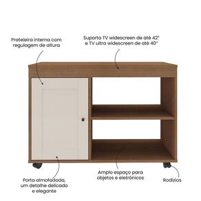 - Durabilidade: Produzido em MDP/MDF com pintura UV. - Modelo compacto e funcional: Ideal para salas de espaço reduzido, suportando TVs de até 35". - Estilo atemporal e versátil: Se adapta a todos os estilos de casas, sem sair de moda. - Porta almofadada: Detalhe sofisticado no estilo americano que torna o móvel mais charmoso com muita delicadeza. - Prateleira para organização: Oferece espaço adicional para objetos decorativos ou dispositivos eletrônicos. - Detalhes em destaque: Design pensado para atender às necessidades do dia a dia de forma minimalista e eficiente. - Organização eficiente: Guarda itens essenciais protegidos e com discrição e elegância por trás da porta. A opção perfeita para quem busca um móvel funcional e elegante para a sala!