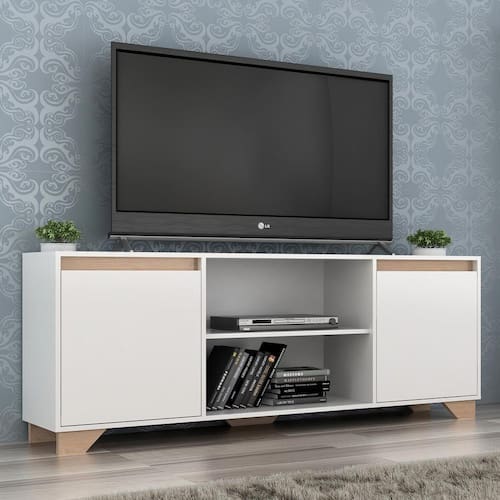 O(a) Rack para TV Até 40 Polegadas Benevello 2 Portas 2030 Branco/Siena - Quiditá Móveis é produzido em MDP.<br>O produto necessita de montagem, chegará na sua casa desmontado, em caixas, acompanhado de todas as peças, ferragens e manuais para montagem, ele é montado com Parafusos, Cavilhas e Minifix., e a sua montagem possui um grau de dificuldade Médio para ser efetuada.<br>Este móvel é indicado para que seja utilizado em Sala de Estar, dando um toque especial no cômodo de sua casa.<br>Para que você mantenha seu produto sempre em ótimo estado, recomendasse Deve ser feita com pano macio e seco ou levemente umedecido com água e sabão neutro. Não devem ser utilizados abrasivos como palha de aço e objetos cortantes..<br><br><br>DETALHAMENTO:<br><br><br>Estrutura:<br>-------------------------------------------<br>Escala de Brilho: Fosco<br>Material da Estrutura: MDP<br><br>Instalação:<br>-------------------------------------------<br>Sistema de Montagem: Parafusos, Cavilhas e Minifix.<br>Necessita de Montagem: Sim<br>Como os Móveis Chegarão na Minha Casa: Desmontados, em caixas, acompanhados de todas as peças, ferragens e manuais para montagem<br>Grau de Dificuldade da Montagem: Médio<br><br>Estrutura Interna:<br>-------------------------------------------<br>Material das Dobradiças: Metálica<br>Material das Corrediças: Não possui<br>Quantidade de Prateleiras: 3<br>Material do Puxador: MDP<br>Quantidade de Portas: 2<br><br>Outras Informações:<br>-------------------------------------------<br>Revestimento/Acabamento: Pintura UV<br>Revestimento/Acabamento: Pintura UV<br>Garantia (dias): 90<br>Indicação de Uso: Sala de Estar<br>Recomendação de Manutenção: Deve ser feita com pano macio e seco ou levemente umedecido com água e sabão neutro. Não devem ser utilizados abrasivos como palha de aço e objetos cortantes.<br><br>Painel para Tv:<br>-------------------------------------------<br>Acompanha Suporte para TV: Não<br>Possui Vidro: Não<br>Possui Espelho: Não<br>Possui furação para passagem de cabos: Não<br>Ideal para TVs até: 40 Polegadas<br>Necessita de fixação na parede: Não<br><br>Rack:<br>-------------------------------------------<br>Tipo de Rack: Sem Painel<br><br>Tamanho/Peso:<br>-------------------------------------------<br>Altura: 61cm<br>Largura: 135cm<br>Profundidade: 35cm<br>Peso: 28kg<br><br>Geral:<br>-------------------------------------------<br>SKU Panorama Móveis: 30047<br>