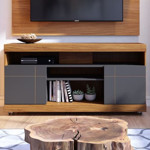 O(a) Rack para TV Até 42 Polegadas 2 Portas Apeu Noce Milano/Preto Fosco - Pnr Móveis é produzido em MDP na escala de brilho Fosco, e possui um grau de dificuldade de montagem: Médio.