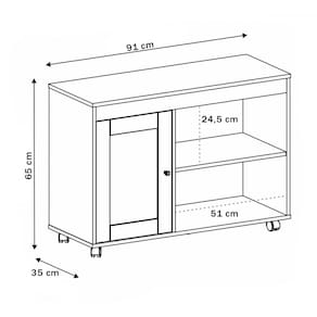 - Medidas do Rack (A x L x P): 65 x 91 x 35 Cm