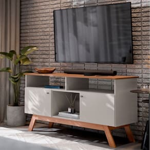 O(a) Rack para TV Até 43 Polegadas Villa 2 Portas 1 Prateleira Off White/Natural - Pnr Móveis é produzido em MDF e MDP na escala de brilho Semi-Brilho, e possui um grau de dificuldade de montagem: Médio.
