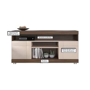 Com um design clean, o Rack Bancada Yara é compacta e moderna, trazendo praticidade e elegância à sua sala de estar. Seus detalhes em linhas retas conferem um visual sofisticado, tornando-a ideal para ambientes pequenos. A bancada possui duas portas com detalhes frisados, perfeitas para acomodar diversos objetos, além de uma prateleira espaçosa para organizar seus aparelhos eletrônicos. Suportando TVs de até 47 polegadas e equipada e com rodízios embutidos, a Bancada Yara é funcional e versátil. CARACTERÍSTICAS TÉCNICAS: - Produzido em MDP 15mm e HDF de 3mm - Acabamento Fosco/Brilho com Pintura UV - Portas com Dobradiça Metálica - Pés em Rodízios Plástico com 9 cm de Altura - Peso Suportado no Tampo de 50 kg - Ideal para TV até 47 Polegadas - Possui 2 Portas e 4 Nichos INFORMAÇÕES TÉCNICAS: Altura: 68,9 cm Largura: 136 cm Profundidade: 37,4 cm Peso: 31,3 kg ITENS INCLUSO: - Rack Yara - Manual de Montagem - Kit de Ferragens INFORMAÇÕES ADICIONAIS: - Não realizamos a montagem do móvel e não nos responsabilizamos por ela. Verifique o produto antes de montá-lo. Produtos danificados na montagem não serão trocados. Montagem e instalação são por conta do comprador. - As imagens decorativas são ilustrativas e podem conter itens não inclusos. As cores do produto podem variar conforme o monitor, iluminação ou percepção visual. - Limpeza: Use um pano macio e seco ou levemente umedecido com água. Não utilize materiais abrasivos como palha de aço ou objetos cortantes. Garantia de 3 meses contra defeitos de fabricação conforme o Código de Defesa do Consumidor.