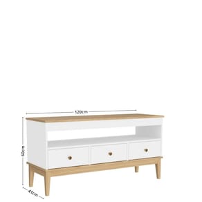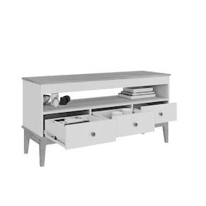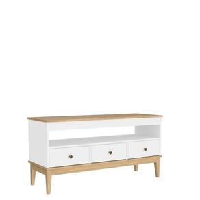 Rack para TV até 50 Polegadas 3 Gavetas com Pés de Madeira Colonial Movelbento - Branco | Cinamomo