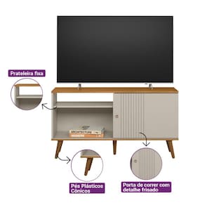 A porta de correr proporciona praticidade e facilidade de acesso aos compartimentos internos, enquanto a prateleira oferece espaço adicional para organizar e exibir seus aparelhos eletrônicos e objetos decorativos.