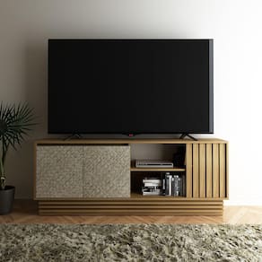 Com design moderno e elegante, o Rack para TV até 52 polegadas Natural/Palha é a escolha perfeita para quem busca estilo e funcionalidade para sua sala de estar. Produzido em MDP 15 mm de alta qualidade e com Acabamento em Pintura UV na cor, garante durabilidade e resistência. O detalhe ripado nas laterais e as portas com frente texturizada conferem um toque de sofisticação ao móvel. O rack possui duas prateleiras espaçosas para acomodar seus aparelhos eletrônicos, livros, objetos decorativos e muito mais. A cor Natural/Palha combina facilmente com diversos estilos de decoração, criando um ambiente aconchegante e convidativo. CARACTERÍSTICAS TÉCNICAS: - Produzido em Material MDP 15 mm - Acabamento em Pintura UV na cor Natural/Palha - Porta com Dobradiças Metálicas - Pés em Rodizío Plástico - Possui 2 Portas e 2 Prateleiras - Suporta TV de até 52" Polegadas INFORMAÇÕES TÉCNICAS: Altura: 61,7 cm Largura: 160 cm Profundidade: 32,8 cm Peso: 31,30 kg INFORMAÇÕES ADICIONAIS: *ATENÇÃO: Não trabalhamos e não nos responsabilizamos pela montagem do móvel. Antes da montagem conferir se o produto está de acordo com o que comprou, produto montado e danificado pela montagem não será aceito troca. **As imagens ambientadas são meramente ilustrativas e podem apresentar itens que não compõe o produto. As cores do produto podem variar de acordo com o monitor, a iluminação do ambiente ou sua percepção visual. ***Limpeza: Deve ser feita com pano macio e seco ou levemente umedecido com água e sabão neutro. Não devem ser utilizados abrasivos como palha de aço e objetos cortantes. Garantia para defeitos de fabricação conforme Código de Defesa do Consumidor.