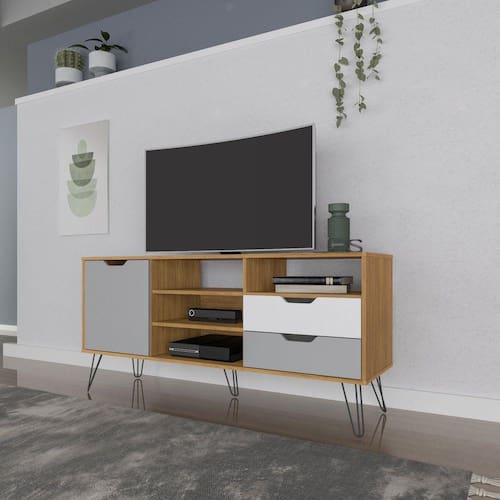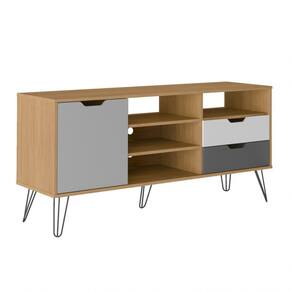 Inspiração e aconchego que todo lar deve ter. Criando um composição elegante o Rack Estocolmo deixa a sua sala de TV de até 55 polegadas moderna e agradável. O rack possui 1 porta e duas gavetas com corrediças metálicas e com aberturas usinadas. Possui 5 pés em metal. Com pintura UV texturizada, sua manutenção fica muito mais fácil. Além disso, o móvel possui tres meses de garantia. A responsabilidade com meio ambiente também é uma das bandeiras da Artely Móveis. Acabamento: Pintura UV Acabamento da Gaveta: Pintura UV Acabamento da Porta: Pintura UV Acabamento da Prateleira: Pintura UV Ambiente Principal: Sala de Estar Complexidade da Montagem: Baixa: pode ser montado por uma pessoa sozinha Cor: Carvalho/Grafite Cor do Produto: Carvalho/Grafite Escala de Brilho: Fosco Escala de Brilho da Porta: Fosco Escala de Brilho da Prateleira: Fosco Gaveta com Chave: Não Ideal para TVs até (Polegadas): 55 Itens Inclusos: 1 Rack, Kit Ferragem e Manual de Montagem Manual de Montagem e Instalação: https://cdn2.madeiramadeira.com.br/atributo/artely/888308-rack-estocolmo-1-0.pdf Material da Gaveta: MDF Material da Porta: MDF Material da Prateleira: MDP Material dos Pés: Metal Material Principal: MDF/MDP Necessita Montagem: Sim Origem do Produto: Nacional Peso: 20,9 kg Peso Máximo por Gaveta: 0,5 kg Peso Máximo por Prateleira: 1 kg Possui Espelho: Não Possui Possui iluminação: Não Possui Pés: 05 Possui Portas: 01 Possui Prateleiras: 01 Quantidade de Nichos: 02 Recomendações de Uso, Manutenção e Limpeza: Pano levemente umedecido em agua Sapatas Niveladoras: Não Sistema de Montagem: Minifix, cavilhas e parafusos Tipo de Corrediça da Gaveta: Metálica Simples Tipo de Dobradiça/Corrediça da Porta: Metálica Tipo de Porta: Bater Tipo de Puxador da Gaveta: Embutido Tipo de Puxador da Porta: Embutido