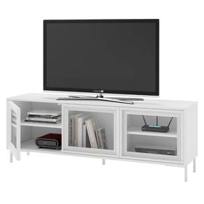 Com 3 portas de vidro, o móvel protege e organiza eletrônicos, livros e objetos decorativos, mantendo o ambiente visualmente leve e sofisticado. Internamente, o rack possui 2 prateleiras, ideais para acomodar aparelhos eletrônicos, acessórios ou itens decorativos com praticidade.
