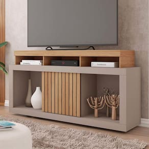 O(a) Rack para TV Até 55 Polegadas Dragon 1 Porta Ripada Marrom/Cinza - Caemmun é produzido em MDF e MDP na escala de brilho Fosco, e possui um grau de dificuldade de montagem: Médio.