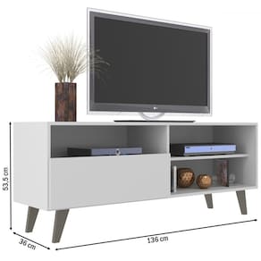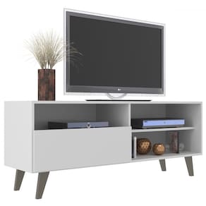 O(a) Rack para TV Até 55 Polegadas Sakai 1 Porta 1 Prateleira Branco/Off White - Loja é produzido em MDP na escala de brilho Fosco, e possui um grau de dificuldade de montagem: Médio.