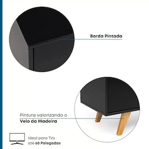 Com design retrô e traços lineares, o Rack soul é uma é peça-chave na decoração e uma ótima escolha para salas de estar e home cinemas com visual urbano e atmosfera vintage. Com estrutura em MDF e pés em madeira maciça Pinus, o produto conta com acabamentos de qualidade, o que garantem a resistência e durabilidade do móvel. Seus compartimentos podem ser utilizados para apoiar acessórios, objetos decorativos e aparelhos eletrônicos. Já a porta permite guardar e manter pequenos objetos sempre organizados. Produto Montado: Sim Acabamento: Laca Acabamento da Porta: Laca Acabamento da Prateleira: Laca Acabamento dos Pés: Pintura Altura dos Pés: 15 cm Altura Máxima dos Pés: 15.0000 Ambiente Principal: Sala de Estar codigo_ean: 7909903126394 Complexidade da Montagem: Baixa: pode ser montado por uma pessoa sozinha Cor: Preto/Amêndoa Cor do Produto: Preto/Amêndoa Cor Interna: Preto Escala de Brilho: Fosco Escala de Brilho da Porta: Fosco Escala de Brilho da Prateleira: Fosco Ideal para TVs até (Polegadas): 60 Itens Inclusos: 1 Rack, Kit de ferragens e Manual de montagem. Linha ou Coleção: Soul Manual de Montagem e Instalação: https://product-hub-prd.madeiramadeira.com.br/799959/documents/d4f4a357-e1c9-44ac-aa26-9cf228df1ded105649564620mp13654.pdf Material da Porta: MDF Material da Prateleira: MDF Material do Puxador da Porta: MDF Material dos Pés: Madeira Maciça Material Principal: MDF Necessita Montagem: Sim Origem do Produto: Nacional Peso: 21,7 kg Peso Máximo por Prateleira: 5 kg Possui Espelho: Não Possui Possui iluminação: Não Possui Pés: 04 Possui Portas: Sim Possui Prateleiras: Sim Possui Vidro: Não Quantidade de Nichos: 02 Recomendações de Uso, Manutenção e Limpeza: Pano levemente umedecido. Não utilizar materiais abrasivos. Sapatas Niveladoras: Não Sistema de Montagem: Cavilha, Parafuso, Pino fixador, Prego, Feltro, Dobradiça metálica e Chave zeta. Tipo de Dobradiça/Corrediça da Porta: Metálica Tipo de Madeira Maciça dos Pés: Pinus Tipo de Porta: Bater Tipo de Puxador da Porta: Embutido