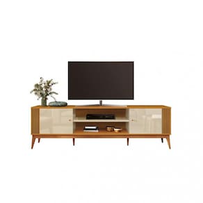 Características: Estrutura em MDP 2 Portas Dobradiças metálicas Puxadores em ABS, 2 nichos, 6 Pés em madeira maciça e acabamento ripado. Acabamento Ripado