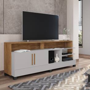 Características: 1 Nicho 2 Portas 1 Prateleira Acabamento pintura com verniz Poliéster Dobradiça metálicas Estrutura em MDP/MDF 12mm Fundo em MDF 3mm Indicado para TV´s de até 65 Polegadas Pés de madeira maciça Pinus 45mm Puxadores em MDF Tampo e laterais em MDP 15mm