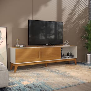 Sua versatilidade permite acomodar aparelhos eletrônicos, desde TV até consoles de jogos, enquanto ainda oferece espaço para objetos de decoração, livros e muito mais. Seja para uma sessão de cinema em família ou para receber amigos em grande estilo, o Rack Domus eleva o visual da sua sala e simplifica sua vida diária.