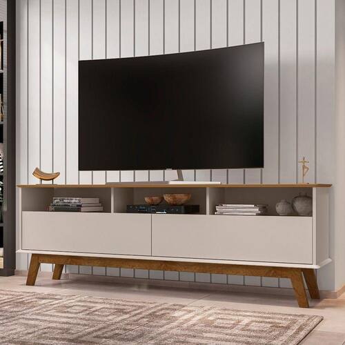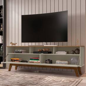 O Rack Elegant é a melhor escolha para sua sala! Com design retrô que irá encantar você. Ele possui tampo e base de MDF chanfrado em ângulo proporcionando ainda mais charme e requinte ao móvel! Seus pés são feitos de madeira maciça garantindo com isso ainda mais qualidade e resistência ao produto. Possui duas portas basculantes com dobradiças metálicas e amplo espaço interno. Suporta TVs de até 65 polegadas e seus amplos nichos são ideais para acomodar aparelhos eletrônicos, objetos de decoração, entre outros. Com tantas qualidades o Rack Elegant perfeito para sua sala!