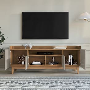 O Rack Adria é ideal para sua sala! Seu estilo vintage retro com certeza irá agregar muito mais charme e requinte ao seu ambiente. Ele possui pés em madeira maciça e foi elaborado em MDP e MDF, essas características garantem ao móvel maior resistência e qualidade. Possui também um nicho interno com amplo espaço que certamente irá acomodar perfeitamente qualquer objeto de decoração, aparelho eletrônico que complemente sua TV, dentre muitos outros aparatos que deseje acomodar no rack. Possui quatro portas em MDF usinadas com exclusivo detalhe de frisos, dobradiças metálicas de caneco 35mm.Ideal para TVs de até 65 polegadas. Com tantas qualidades o Rack Adria é perfeito para sua sala! Acabamento: Pintura UV Acabamento da Porta: Pintura UV Acabamento dos Pés: Verniz Altura dos Pés: 18 cm Ambiente Principal: Sala de Estar codigo_ean: 7900288129482 Complexidade da Montagem: Baixa: pode ser montado por uma pessoa sozinha Cor: Off White/Cedro Cor da Porta: Branco Cor do Produto: Off White/Cedro Escala de Brilho: Semi-Fosco Escala de Brilho da Porta: Semi-Fosco Espessura do Tampo: 15 mm Ideal para TVs até (Polegadas): 65 Itens Inclusos: 1 Rack, Kit Ferragens e Manual de Montagem Manual de Montagem e Instalação: https://cdn2.madeiramadeira.com.br/atributo/casa-d/2875721-3570-17455008037903.pdf Marca: Casa D Material da Porta: MDF Material dos Pés: Madeira Maciça Material Principal: MDF/MDP Necessita Montagem: Sim Origem do Produto: Nacional Peso: 38 kg Possui Espelho: Não Possui Possui iluminação: Não Possui Passa Cabos: Sim Possui Pés: 04 Possui Portas: 04 Possui Prateleiras: Não Possui Vidro: Não Recomendações de Uso, Manutenção e Limpeza: Recomenda-se limpar o produto com flanela ou pano macio seco, não utilizar produtos abrasivos, desengordurantes, álcool ou solvente. Mantê-lo em lugar livre de umidade e/ou exposição direta ao sol. Sapatas Niveladoras: Não Sistema de Montagem: Parafusos, Cavilhas e pregos. Tipo de Dobradiça/Corrediça da Porta: Metálica Tipo de Madeira Maciça dos Pés: Pinus Tipo de Porta: Bater Tipo de Puxador da Porta: Embutido