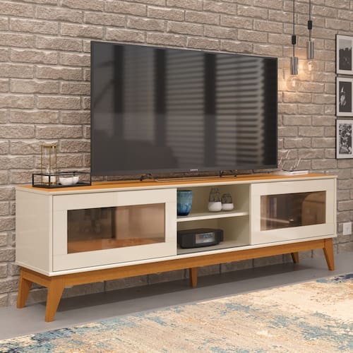 Sua versatilidade permite acomodar aparelhos eletrônicos, desde TV até consoles de jogos, enquanto ainda oferece espaço para objetos de decoração, livros e muito mais. Seja para uma sessão de cinema em família ou para receber amigos em grande estilo, o Rack Amber eleva o visual da sala e simplifica sua vida diária.