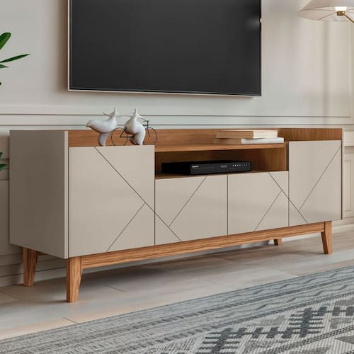 O(a) Rack para TV Até 65 Polegadas Andriely 4 Portas Off White/Cedro - Pnr Móveis é produzido em MDF e MDP na escala de brilho Semi-Fosco, e possui um grau de dificuldade de montagem: Médio.