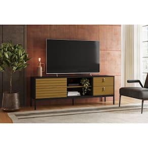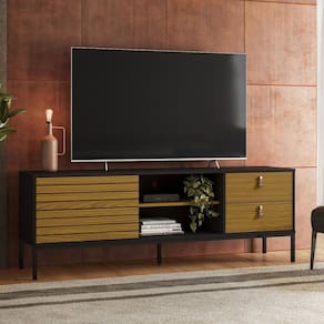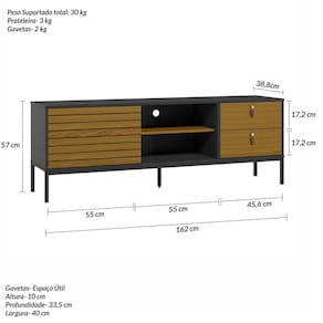 O Rack Industrial Dyor é um produto com um design inovador e com diversidades de materiais. Possui puxadores com design caracterizados em couro natural, estruturas dos pés em metal na cor ouro envelhecido ou preto. Sua estrutura é em MDF e MDP de 15 mm, possui 1 prateleira para decoração ou eletrônicos, duas gavetas com corrediças telescópicas e uma porta deslizante em MDF frisada. É um produto com design de uma pegada industrial para quem gosta do estilo mais urbano e contemporâneo onde você personaliza seu ambiente deixando-o exclusivo. Acabamento: Acetinado Acabamento da Gaveta: Acetinado Acabamento da Porta: Acetinado Acabamento da Prateleira: Acetinado Ambiente Principal: Sala de Estar Complexidade da Montagem: Alta: deve ser montado por um montador especializado Cor: Preto Ac/ Cedro Frj Ac Cor do Produto: Preto Ac/ Cedro Frj Ac Cor Flex: NÃO Cor Interna: PRETO Escala de Brilho: Semi-Brilho Escala de Brilho da Gaveta: Semi-Brilho Escala de Brilho da Porta: Semi-Brilho Escala de Brilho da Prateleira: Semi-Brilho Gaveta com Chave: Não Ideal para TVs até (Polegadas): 65 Itens Inclusos: 1 Rack, Manual de Montagem, Kit de Montagem Manual de Montagem e Instalação: https://product-hub-prd.madeiramadeira.com.br/905170/documents/34107964-24fb-4899-9a5f-cf453063483c858manualdemontrackinddior.pdf Material da Gaveta: MDF/MDP Material da Porta: MDF Material da Prateleira: MDP Material do Puxador da Gaveta: Couro Material dos Pés: Metal Material Principal: MDF/MDP Montagem Flex: NÃO Necessita Montagem: Sim Origem do Produto: Nacional Peso: 30 kg Peso Máximo por Gaveta: 2 kg Peso Máximo por Prateleira: 3 kg Possui Adega: Não Possui Espelho: Não Possui Possui iluminação: Não Possui Pés: 05 Possui Portas: Sim Possui Prateleiras: Sim Possui Vidro: Não Quantidade de Gavetas: 02 Gavetas Quantidade de Nichos: Não Recomendações de Uso, Manutenção e Limpeza: PANO ÚMIDO. NÃO APLICAR LUSTRA MÓVEIS Sapatas Niveladoras: Sim Sistema de Montagem: PARAFUSOS, MINIFIX, SAPATAS Tipo de Corrediça da Gaveta: Metálica Telescópica Tipo de Porta: Correr Tipo de Puxador da Gaveta: Externo Tipo de Puxador da Porta: Embutido Tipo de Rack: Rack Moderno