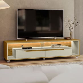 O(a) Rack para TV Até 65 Polegadas Loop 2 Gavetas com Vidro e Led Cedro/Off White - Olivar Móveis é produzido em MDP/MDF na escala de brilho Brilhante e Semi-Brilho, e possui um grau de dificuldade de montagem: Médio.