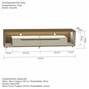 - Medidas do Rack (A x L x P): 44 X 175 X 38,8 cm