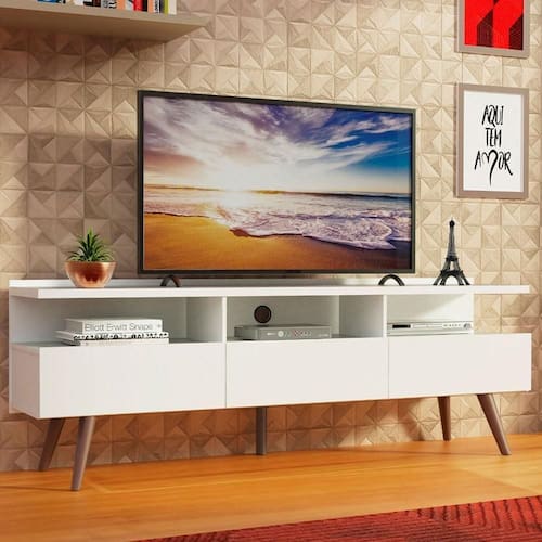 - Itens inclusos: Um Rack com três nichos abertos e três portas basculantes