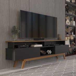 Além disso, os pés em madeira maciça não apenas proporcionam estabilidade e robustez ao rack, mas também adicionam um toque de sofisticação ao seu design, elevando o visual do ambiente. Ideal para acomodar TV até 70 polegadas, garantindo que você desfrute de seus programas favoritos com conforto. Trazendo praticidade, funcionalidade e beleza em um único móvel. Seja na sala de estar, no quarto ou em qualquer outro ambiente, este rack oferece o espaço de armazenamento necessário para organizar seus itens eletrônicos e decorativos, enquanto adiciona um toque de estilo à sua casa.