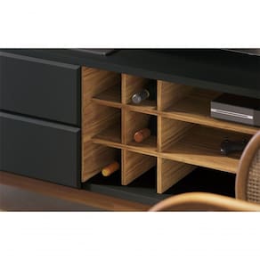 Seu destaque vai para seu porta-garrafas com capacidade para 6 unidades e pés em madeira maciça, trazendo sofisticação e elegância para sua sala!