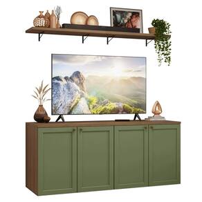 O conjunto é composto por um rack com quatro portas, complementado por prateleiras suspensas que proporcionam espaço extra para decoração e organização. As portas contam com dobradiças com amortecimento, garantindo um fechamento suave e silencioso. Além disso, o rack oferece amplo espaço interno para armazenar equipamentos eletrônicos e outros itens, mantendo a sala sempre em ordem.