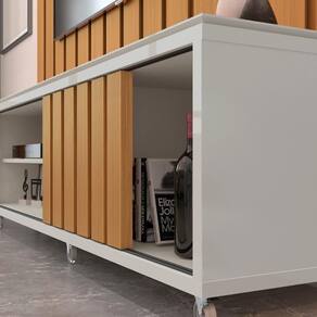 Rack Para Tv Até 70 Polegadas 2 Portas Ripadas Roma 220cm Cor:fendi E Freijó Fendi E Freijó O Rack Roma com acabamento ripado é um móvel elegante e funcional, perfeito para quem busca praticidade e modernidade em um só lugar. As portas deslizantes conferem um toque de sofisticação ao móvel e ajudam a manter a organização do espaço. Os rodízios em silicone permitem que o Rack Roma seja facilmente movimentado, facilitando a limpeza e a reorganização do ambiente. Além disso, o tampo duplo oferece espaço suficiente para acomodar aparelhos eletrônicos, objetos decorativos e outros itens essenciais do dia a dia. Especificações Técnicas: - Material: MDP; - Acabamento: Pintura UV; - Número de Prateleiras: 1 Prateleira; - Número de Gavetas: Não possui; - Número de Portas: 2 Portas; - Produto Precisa de Montagem? Sim; - Instruções de Cuidado: Limpar com pano levemente umedecido; - Medidas do Rack (Altura - Largura - Profundidade): 56x218x45 cm; - Conteúdo da Embalagem: 01 Rack - Entregue em: 2 Volumes Observações Importantes: Produto não devem ficar expostas diretamente ao sol, calor e umidades excessivas. O produto pode sofrer alterações de tonalidade conforme o seu monitor. Imagens meramente ilustrativas, produto não acompanha objetos de decoração e eletrônicos. Ao receber, verifique a embalagem. Se danos ou violação na mesma, recuse o recebimento e nos contate. Não nos responsabilizamos, no ato da , por subir escadas/elevadores. Nós não nos responsabilizamos pela e por problemas cas pela realizada por você ou montador contratado. Enfatizamos a recomendação aos nossos clientes de contratar um montador profissional. Eventualmente, se faltar qualquer peça ou acessório no produto, nos contate e enviaremos a peça/acessório sem custo adicional. Cor: Cor Cor: Fendi e Freijó
