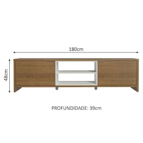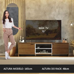 Este móvel é espaçoso e suporta TVs de até 75 polegadas. Conta com duas portas grandes e um nicho para organizar seus aparelhos eletrônicos de maneira prática. O acabamento combina os tons amadeirado Rustic e branco. É realizado com a Pintura Poliésterde alta resistência da Madesa, um método ecológico que oferece maior durabilidade e proteção.