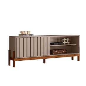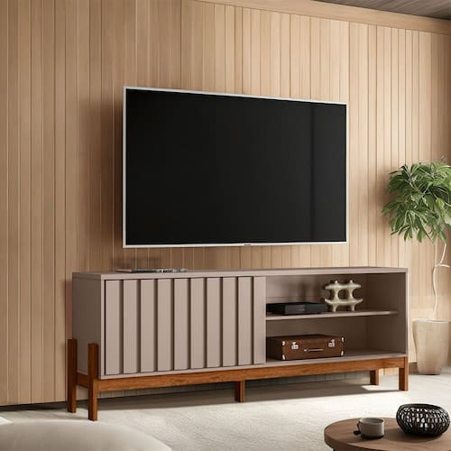 Linda Bancada New Aurora, possui pés de 2,5cm em MDP, 1 porta ripada de correr que você pode variar o lado que quiser deixar posicionada, sempre deixando o seu ambiente de uma forma diferente, alegre e inovadora. Suporta TV de até 75”. Produto Montado: Sim Acabamento: Pintura UV Acabamento da Porta: Pintura UV Acabamento da Prateleira: Pintura UV Acabamento dos Pés: Pintura Altura dos Pés: 19,8 cm Altura Máxima dos Pés: 19.8000 Ambiente Principal: Sala de Estar codigo_ean: 7900288090508 Complexidade da Montagem: Alta: deve ser montado por um montador especializado Cor: Grigio Fosco/Cinamomo Mel Cor do Produto: Grigio Fosco/Cinamomo Mel Cor Interna: Grigio Fosco Escala de Brilho: Fosco Escala de Brilho da Porta: Fosco Escala de Brilho da Prateleira: Fosco Espessura do Tampo: 25 mm Ideal para TVs até (Polegadas): 75 Informações Complementares: Pés, tampo de 25mm, porta ripada da correr, suporta TV de até 75" Itens Inclusos: Bancada embalado em isomanta, papelão e termo encolhível Linha ou Coleção: Living Manual de Montagem e Instalação: https://product-hub-prd.madeiramadeira.com.br/980865/documents/31bbd7c0-1e42-4c01-9fe8-bc72db5c84a42740355277817418022328846.pdf Marca: Mobler Material da Porta: MDP Material da Prateleira: MDP Material dos Pés: MDP Material Principal: MDP Necessita Montagem: Sim Origem do Produto: Nacional Peso: 40 kg Peso Máximo por Prateleira: 3 kg Possui Espelho: Não Possui iluminação: Não Possui Passa Cabos: Não Possui Pés: 05 Possui Portas: Sim Possui Prateleiras: Sim Possui Vidro: Não Quantidade de Nichos: 02 Recomendações de Uso, Manutenção e Limpeza: Para conservar a aparência e a durabilidade do produto: - Utilizar pano macio e úmido; - não usar solventes ou abrasivos Sapatas Niveladoras: Não Sistema de Montagem: Parafusos, Cavilhas, Pregos Tipo de Porta: Correr Tipo de Puxador da Porta: Embutido