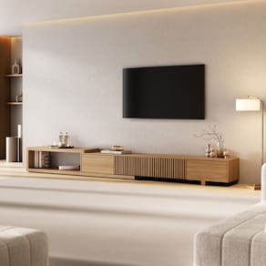 O Rack Aruá traz a essência do estilo japandi, inspirado na simplicidade oriental e no equilíbrio entre forma e função. Com design baixo, portas lisas e ripadas, acabamento em Jatobá e ferragens premium, une sofisticação e praticidade. Disponível em 180 e 220 cm, pode ser suspenso, apoiado no piso ou configurado com aparador extensível. Produto Montado: Sim Acabamento: Finish Foil Acabamento da Porta: Finish Foil Acabamento dos Pés: Finish Foil Altura dos Pés: 5,5 cm Altura Máxima dos Pés: 5.5000 Ambiente Principal: Sala de Estar codigo_ean: 7900288237538 Complexidade da Montagem: Média: pode ser montado por mais de uma pessoa e/ou necessite de maior conhecimento para montagem Cor: Jatobá Cor do Produto: Jatobá Escala de Brilho: Semi-Fosco Escala de Brilho da Porta: Semi-Fosco Espessura do Tampo: 40 mm Estilo do Pé: Moderno Ideal para TVs até (Polegadas): 75 Itens Inclusos: 1 Rack, Manual de Montagem e Kit Ferragens Linha ou Coleção: Aruá Manual de Montagem e Instalação: https://product-hub-prd.madeiramadeira.com.br/484221172/documents/60ecb888-27a0-4e1d-93bc-a04eeaf754d43232074600517587233804621.pdf Marca: CabeCasa MadeiraMadeira Material da Porta: MDP Material do Puxador da Porta: MDP Material dos Pés: MDP Material Principal: MDP Modelo de Porta: Porta Ripada Montagem Flex: Sim, o aparador pode ser montado para o lado esquerdo e direito. Necessita Montagem: Sim Origem do Produto: Nacional Peso: 51,15 kg Possui Espelho: Não Possui iluminação: Não Possui Passa Cabos: Não Possui Pés: 02 Possui Portas: Sim Possui Prateleiras: Não Possui Vidro: Não Recomendações de Uso, Manutenção e Limpeza: A limpeza deve ser feita com pano macio, levemente umedecido com água e sabão neutro. Em seguida, passe um pano seco para evitar o acúmulo de umidade. Nunca utilize produtos abrasivos, esponjas de aço, alvejantes, álcool em excesso ou solventes, pois esses produtos podem agredir o acabamento e comprometer sua aparência. Sapatas Niveladoras: Não Sistema de Montagem: Parafusos, cavilhas e minifix Tipo de Dobradiça/Corrediça da Porta: Metálica Tipo de Porta: Basculante Tipo de Puxador da Porta: Embutido