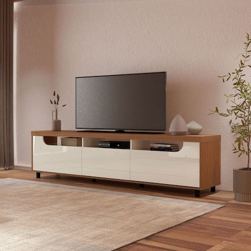 O(a) Rack para TV Até 75 Polegadas Mercury 2 Portas 1 Gaveta Cinamomo/Off White - Artely Móveis é produzido em MDP e Tamburato na escala de brilho Fosca com Textura, e possui um grau de dificuldade de montagem: Médio.