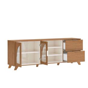 O(a) Rack para TV Até 75 Polegadas Murano 2 Portas 2 Gavetas Cinamomo/Off White - Artely é produzido em MDF e MDP na escala de brilho Fosca com Textura, e possui um grau de dificuldade de montagem: Médio.