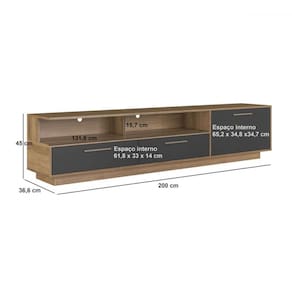 - Medidas do Rack (A x L x P): 45x200x36,6 cm