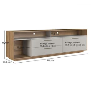 - Medidas do Rack (A x L x P): 58,4x200x36,6 cm
