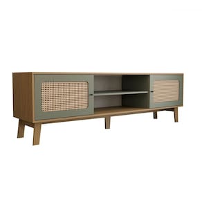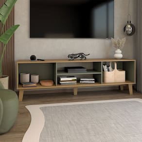 O(a) Rack para TV Até 75 Polegadas Retro 2 Portas Carvalho/Menta - Loja é produzido em MDP na escala de brilho Fosco, e possui um grau de dificuldade de montagem: Médio.
