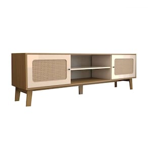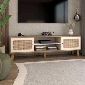 O(a) Rack para TV Até 75 Polegadas Retro 2 Portas Carvalho/Off White - Loja é produzido em MDP na escala de brilho Fosco, e possui um grau de dificuldade de montagem: Médio.