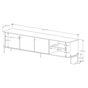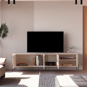 Medidas: L 181cm x A 54,5cm x P 40,5cm. Produto Montado: Sim Acabamento: Pintura UV Acabamento da Porta: Pintura UV Acabamento da Prateleira: Pintura UV Acabamento dos Pés: Pintura Ambiente Principal: Sala de Estar codigo_ean: 7900288124173 Complexidade da Montagem: Alta: deve ser montado por um montador especializado Cor: Off White/Preto Cor da Caixa: Off White Cor da Porta: Off White Cor do Produto: Off White/Preto Cor Flex: não Cor Interna: Off White Escala de Brilho: Semi-Brilho Escala de Brilho da Porta: Semi-Brilho Escala de Brilho da Prateleira: Semi-Brilho Espessura do Tampo: 15 mm Estilo do Pé: Industrial Ideal para TVs até (Polegadas): 75 Itens Inclusos: 1 Rack, Manual de Montagem e Kit Ferragens Linha ou Coleção: Linha 2025 Manual de Montagem e Instalação: https://product-hub-prd.madeiramadeira.com.br/976496/documents/2d312a47-435f-4bf0-a6a3-eee3355a31562748206540417422958999732.pdf Marca: JB Bechara Material da Porta: MDF Material da Prateleira: MDF Material do Puxador da Porta: Metal Material dos Pés: Metal Material Principal: MDF Modelo de Porta: Porta Lisa Montagem Flex: não Necessita Montagem: Sim Origem do Produto: Nacional Peso: 31,2 kg Peso Máximo por Prateleira: 5 kg Possui Adega: Não Possui Espelho: Não Possui iluminação: Não Possui Passa Cabos: Sim Possui Pés: 05 Possui Vidro: Não Quantidade de Nichos: 04 Recomendações de Uso, Manutenção e Limpeza: Na remoção da poeira utilize flanela limpa e levemente umedecida. Não exponha à luz solar e locais úmidos. Não encoste o móvel na parede para evitar transmissão de umidade. Sapatas Niveladoras: Não Sistema de Montagem: O produto será entregue desmontado, acompanhado do manual de montagem. Não oferecemos serviço de montagem. A montagem e instalação é por conta do cliente. Recomendamos a contratação de um profissional. Não nos responsabilizamos por danos decorrentes a e Tipo de Dobradiça/Corrediça da Porta: Metálica Tipo de Porta: Bater Tipo de Puxador da Porta: Externo