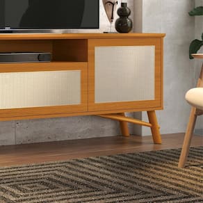 Te apresento nosso Rack Rattan! Com estrutura completa para deixar sua sala de estar bem-organizada e com um visual moderno. Nosso Rack foi desenvolvido para você que procura bom gosto e qualidade. Elaborado em material MDF e MDP com acabamento em pintura UV, possui 3 portas com acabamento em Rattan, sendo a porta central do modelo basculante com ótimo espaço para auxiliar na organização do seu ambiente. Além dos compartimentos internos, você também tem disponível o tampo amplo, e juntos eles vão acomodar os eletrônicos e aqueles outros objetos de decoração. Para garantir ainda mais qualidade e durabilidade os pés do Rack Rattan são em madeira maciça trazendo mais resistência ao móvel.